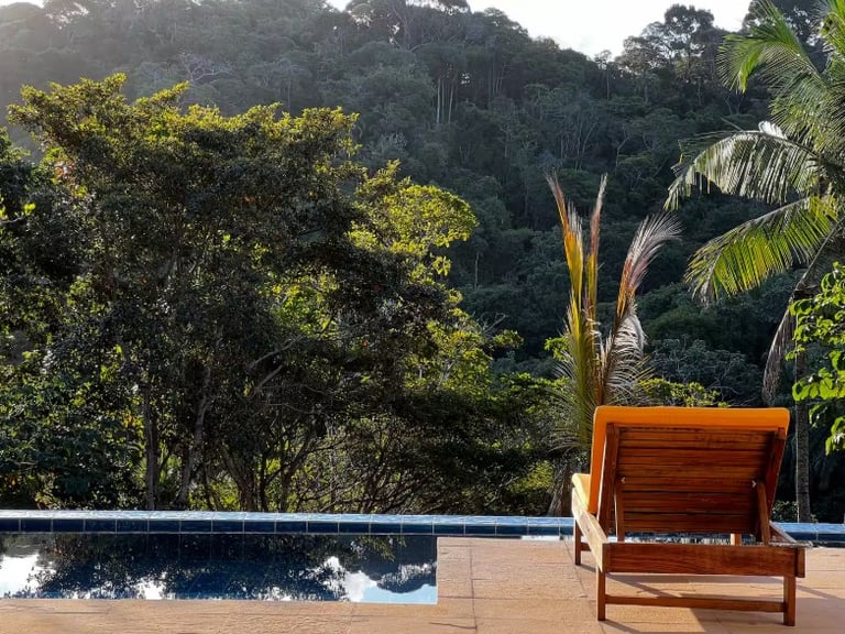 Piscina privativa rodeada pela mata