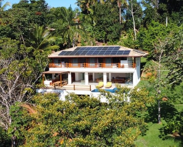 Villa Dendê is a peaceful retreat surrounded by the Atlantic Forest, where lush greenery, natural light, and quiet surroundings create an immediate sense of relaxation. Located on the upper part of a secure private residential community, the house enjoys a serene setting and offers privileged access to São José Beach and Prainha, two of Itacaré’s most beautiful beaches, easily reachable from the residence. It’s the ideal choice for families and groups seeking comfort, tranquility, and an authentic connection with nature.